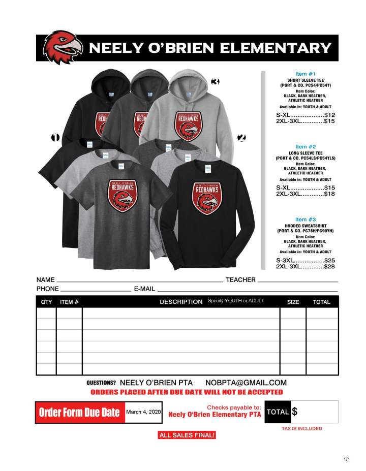 Download your order forms below and return them to the Neely O’Brien PTA via the main office or NOBPTA@gmail.com with FULL payment by March 4th, 2020 . Orders will be available for pickup in April 2020.