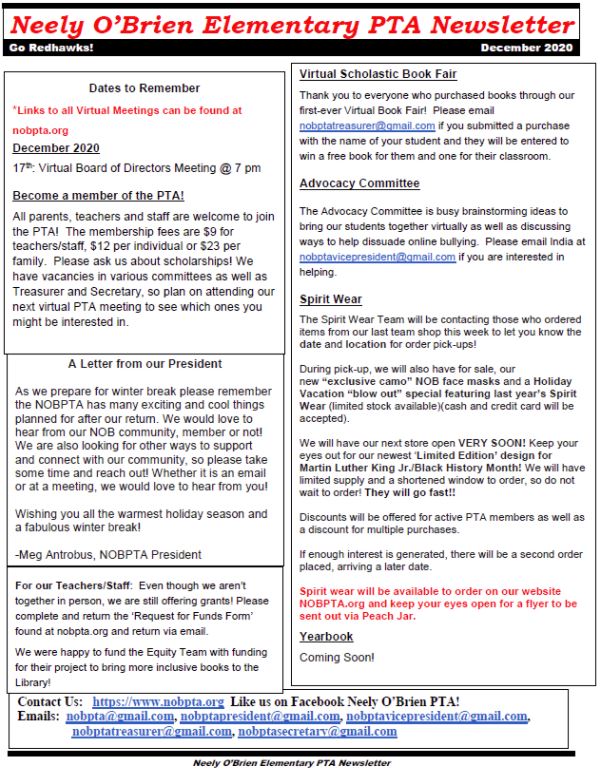 Decemeber Newsletter