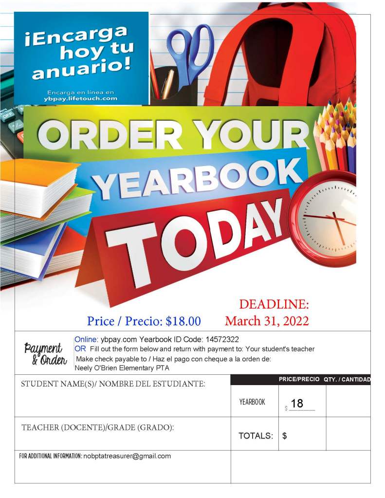 The 2021-2022 Neely O’Brien Elementary Yearbook is available to order NOW with deliveries occurring in June! This year we welcomed Kindergarteners to the school and were able to return in person after a year of virtual learning, so this yearbook is a great way to remember this special year as ‘There is No Place Like Neely’!!! Each yearbook is $18 and you can pay online or with a check. Please review the flyer for details and reach out to us at nobptatreasurer@gmail.com with any questions. Thank you!
